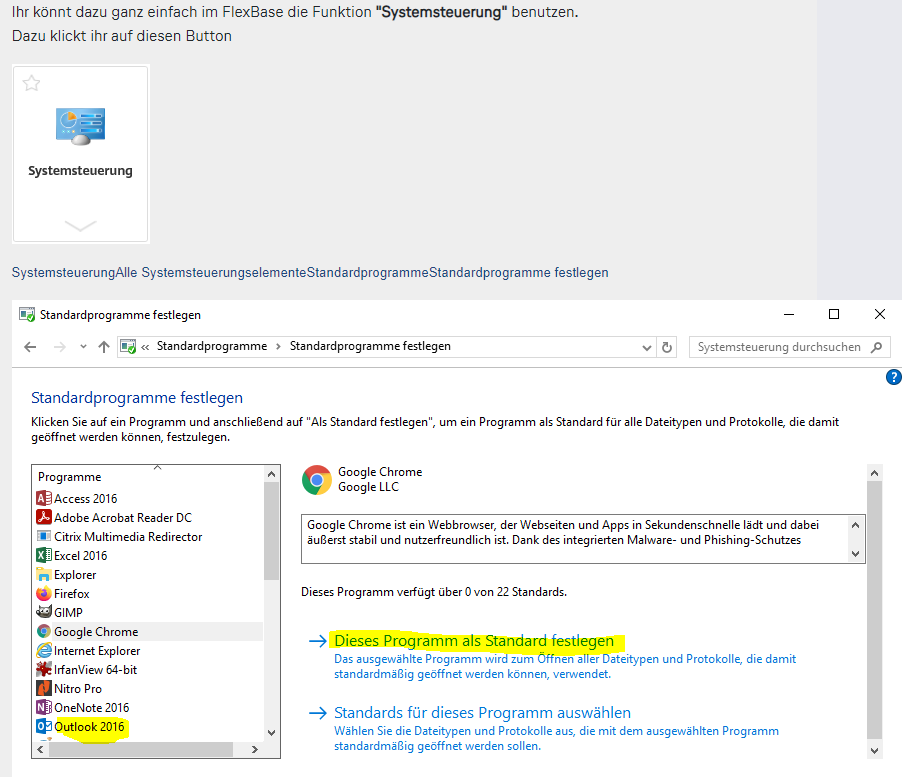 Outlook festlegen
