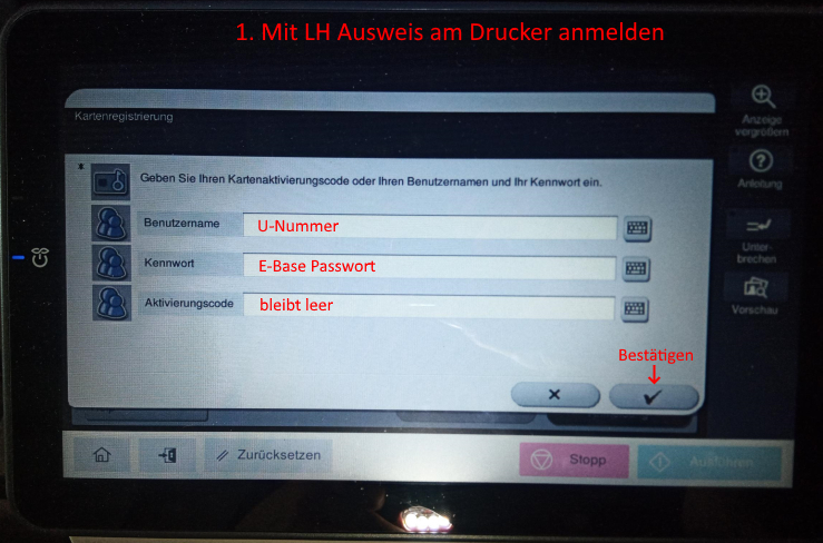 mit LH Ausweis am Drucker anmelden